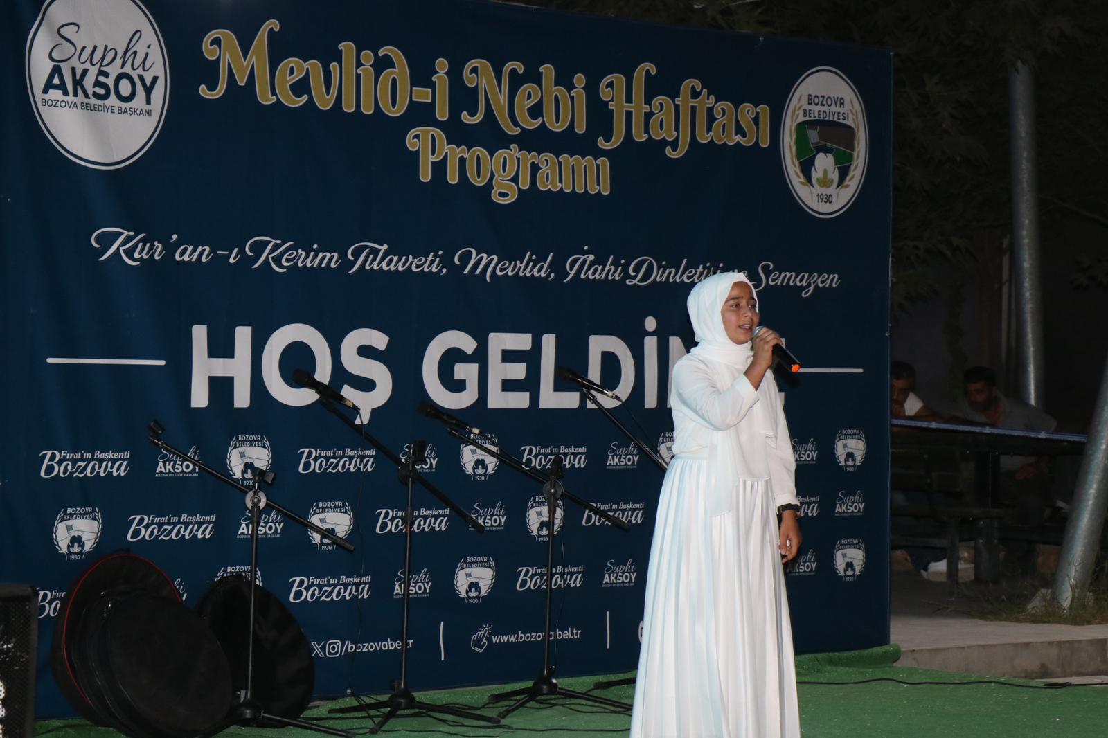 Düzenlenen programda Türkiye Gençlik Vakfı (TÜGVA) Bozova ilçe temsilciliği öğrencileri tarafından Kur’an Kerim tilaveti semazen gösterisi ve birbirinden güzel şiirler okundu. Mevlid-i Nebi coşkusu okunan ilahilerle son buldu. Düzenlenen Mevlid-i Nebi programı ile ilgili bir konuşma Belediye Başkanı Suphi Aksoy; İnsanlık âlemine bir kurtuluş müjdecisi olarak gönderilen ve insanlığın ufkunu aydınlatan Peygamberimizin hoş görüsü ve güzel ahlakı toplumsal barışın temel taşıdır. İnsanlığın her zaman ve mekânda Hz. Peygamber’in tebliğ ettiği ilâhî mesaja ve bu mesajın hayata geçirilmiş şekli olan onun sünnetine ihtiyacı vardır. Uğruna kâinatın yaratıldığı Sevgili Peygamberimizin doğumunun sene-i devriyesinde olduğu gibi hayatımızın geri kalan her döneminde örnek hayat çizgisini, söz ve davranışlarını uygulayıp yaşayabilmek, hiç şüphesiz ki bizlerin Peygamberimize olan bağlılığının da bir ifadesi olacaktır. Mevlid-Nebi haftası programında emeği geçen başta Bozova TÜGVA vakfı öğretici ve öğrencilerine, düzenlenen bu etkinliğe iştirak eden tüm Bozovalı hemşerilerime de teşekkür ediyorum’ dedi. Etkinliğe katılan ilçe kaymakamı Halil İbrahim Yeşilyurt ise ‘kısa süre önce Bozova’da göreve başlamam ve kısa sürede ilçemizdeki halkımızla buluşmanın sevincini yaşıyorum. Kısa süre önce göreve başladığım ilçemizde böylesi güzel bir etkinliğe katılmanın sevincini yaşıyorum. Bu gecenin düzenlenmesinde gençlerimizin Abisi Belediye Başkanımız Suphi Aksoy başta olmak üzere TÜGVA vakfı temsilciliğine emeklerinden dolayı teşekkür ediyorum. İnşallah Belediye başkanımız ile birlikte bu tür etkinliklere birlikte de öncülük edeceğiz. Bu geceyi idrak etmenin sevincini ve mutluluğunu yaşıyorum. Tüm Bozovalı halkımızın da kandilini tebrik ediyorum’ dedi.