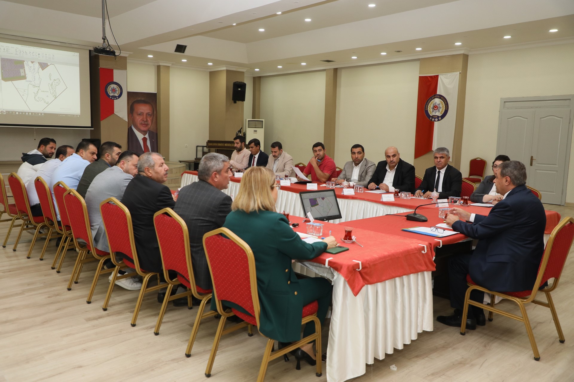 Vali Hasan Şıldak başkanlığında polis evinde yapılan toplantıda gündem maddeleri değerlendirildi. Toplantıda Şanlıurfa Valiliği himayelerinde Büyükşehir Belediyesine bağlı ŞUSKİ Genel Müdürlüğü tarafından ihalesi yapılan OSB’ye su götürme projesinin ilerleme durumu değerlendirildi.Sanayi ve Teknoloji Bakanlığı tarafından OSB’ye 450 hektar genişlemenin kesinleşmesi ile birlikte parselasyon ve alt yapı çalışmalarına hız verilmesi ve tahsislere başlama sürecinin hızlandırılması hususu gündem maddeleri arasında görüşülürken toplantıda ayrıca OSB ile ilgili diğer iş ve işlemlerle birlikte sanayicilerin talepleri görüşülerek karara bağlandı.Organize Sanayi Bölgesinin 450 hektar genişleyecek olmasının memnuniyet verici olduğunun altını çizen Vali Şıldak, yatırımı ve yatırımcıyı sadece OSB yönetimi olarak değil şehrin tüm dinamikleriyle birlikte destekleyeceklerini ifade etti.Toplantıya Vali Hasan Şıldak’ın yanı sıra, Vali Yardımcısı Yeliz Mercan, Haliliye Kaymakamı Serap Özmen Çetin, Müteşebbis Heyeti Başkan Vekili Muhiyettin Kelekçi, OSB Bölge Müdürü Osman Oktay ile Müteşebbis Heyeti Kurul Üyeleri katıldı.