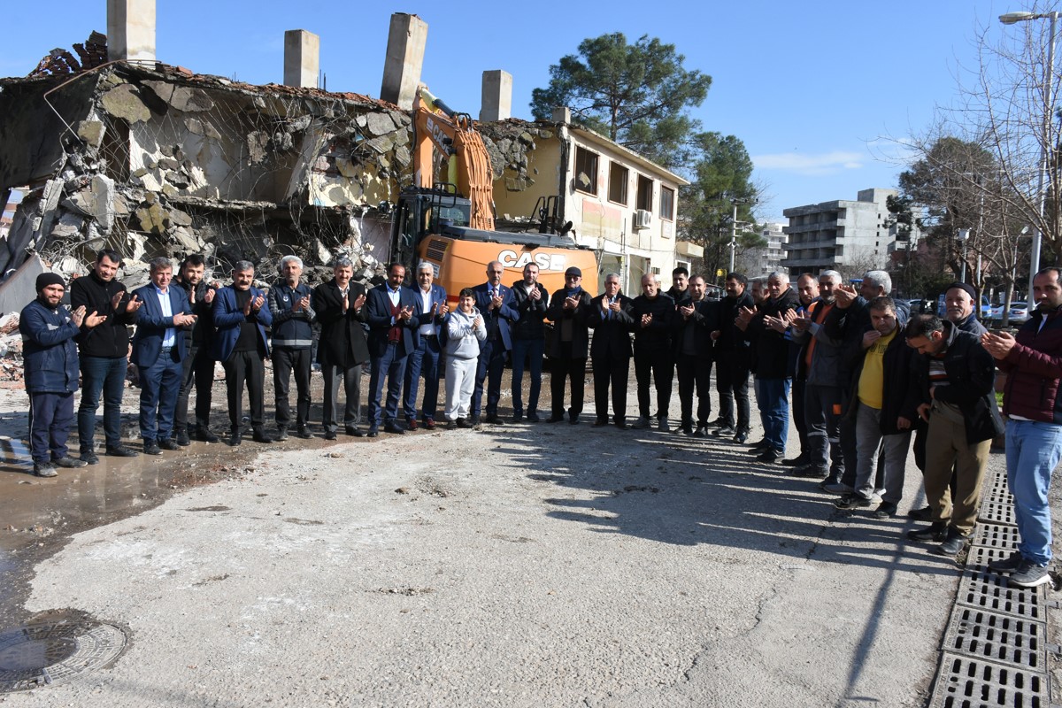 Hilvan Kent Meydanına kavuşuyor. Yıkımına başlanan belediye eski hizmet binasının yerine modern kent meydanı inşa edilecek.