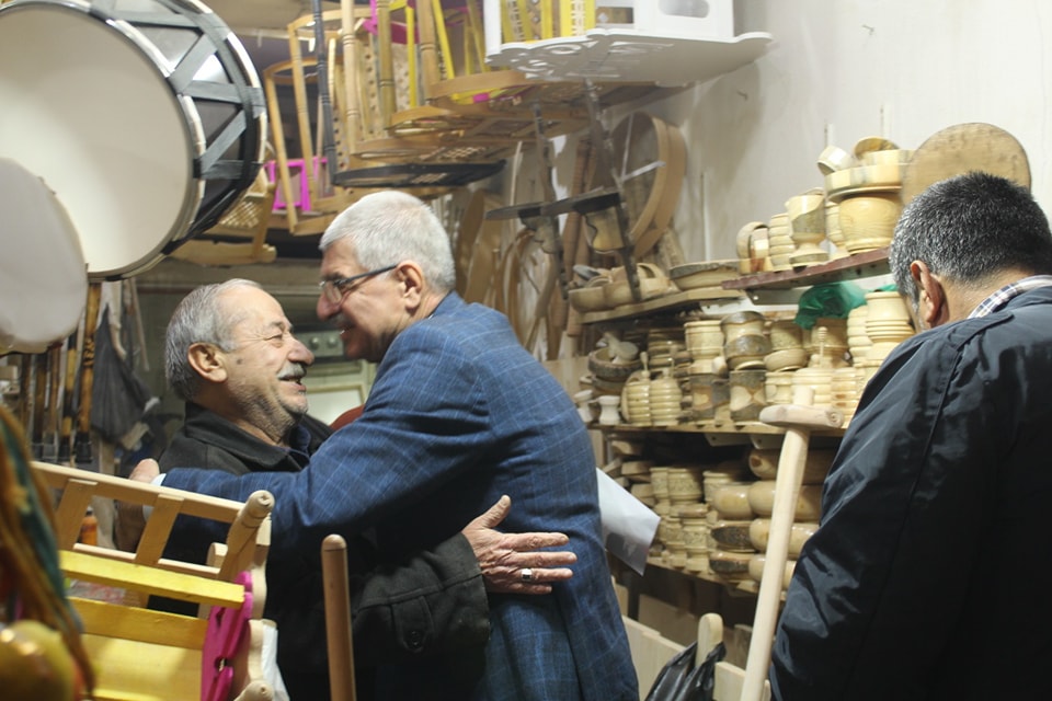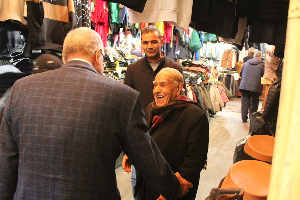 Necar, eskiciler çarşı, Arap Meydanı ve çevre esnafını ziyaret ettiler, vatandaşların sorunlarını dinleyip notlarını alıyor ve çözüm için destek talep ediyor.
