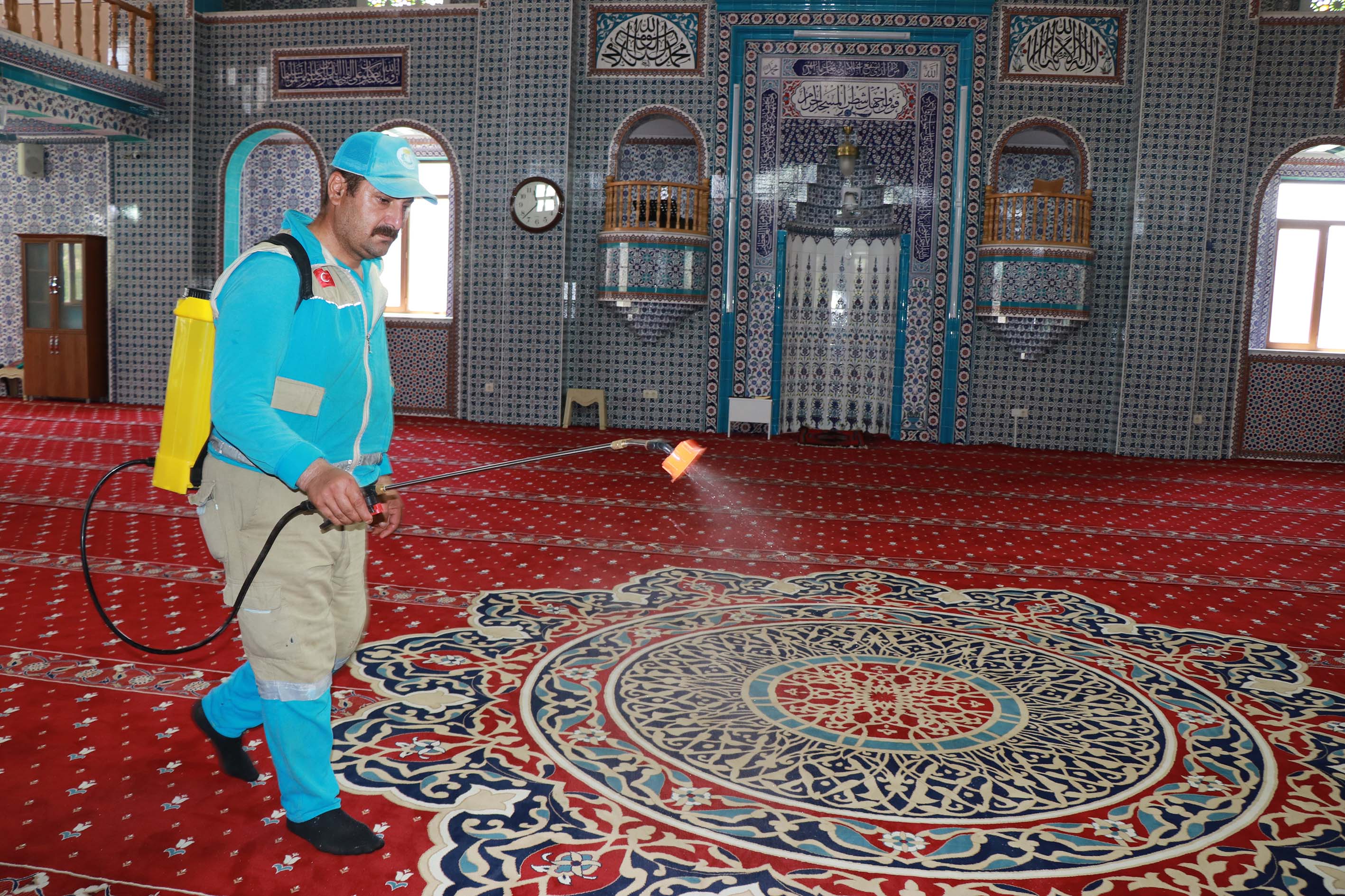 Kurban Bayramı arifesinde ilçede bulunan cami ve mescitlerin halılarını da yerinde temizleyen ekipler, gül suyu ile temizlik çalışmalarını tamamladı. Bayram namazı için camileri hazır hale getiren Temizlik İşleri Müdürlüğü, çalışmaları kırsal ve merkez ayrımı yapmadan sürdürdü. Camilerin yanı sıra taziye evlerinde de temizlik çalışmalarını devam ettiren görevli personeller, belirlenen adresleri Kurban Bayramına hazırladı.