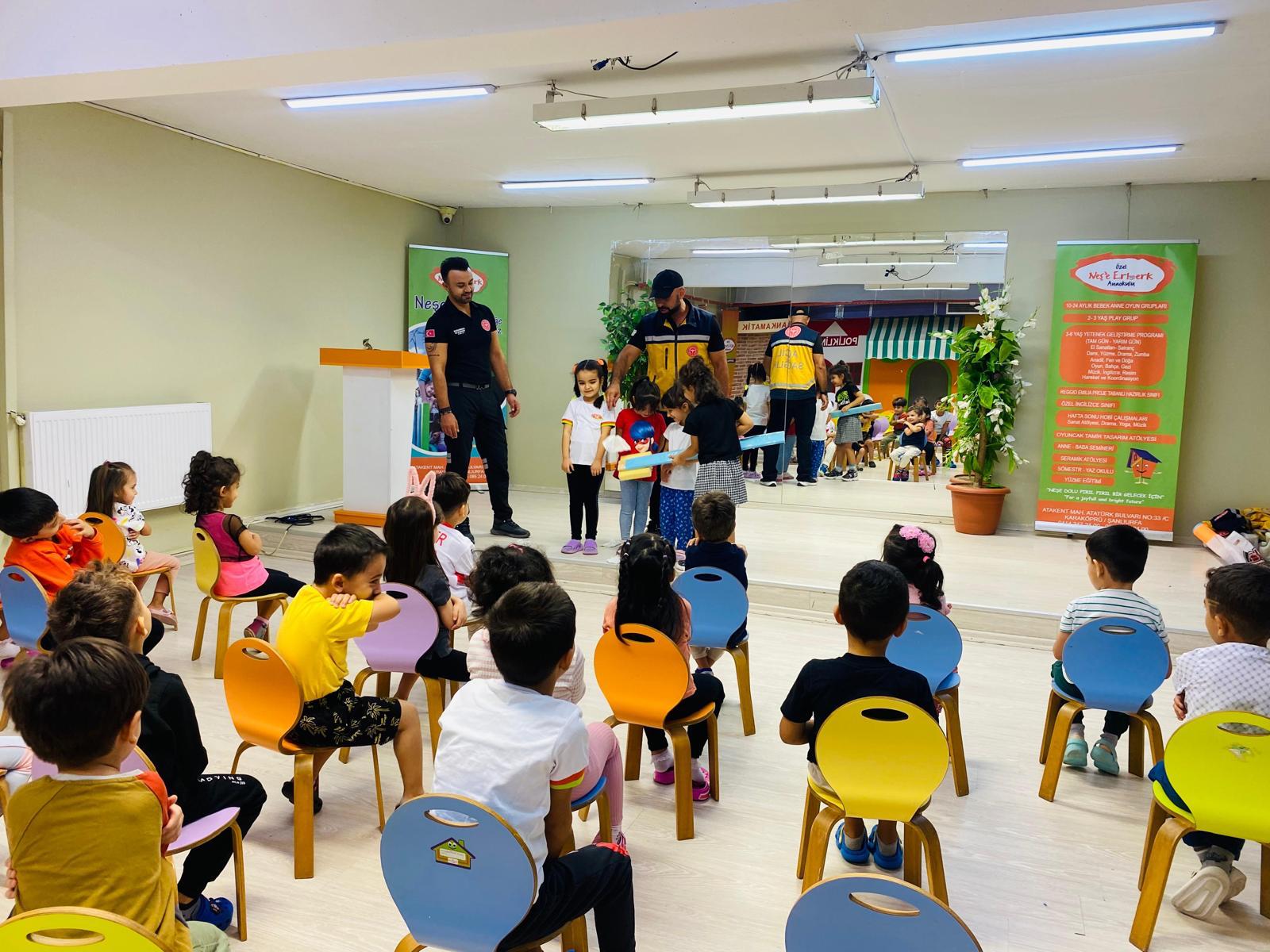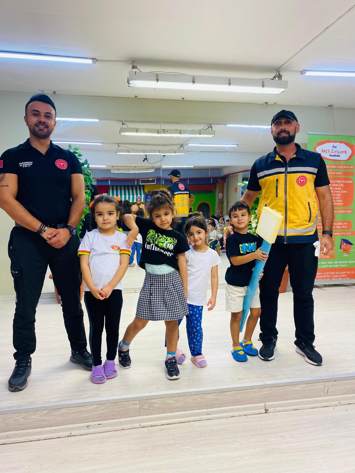 Şanlıurfa İl Sağlık Müdürlüğü Acil Sağlık Hizmetleri Başkanlığı Eğitim Birimi tarafından; bir kreşte eğitim gören minik öğrencilere; 112 acil sağlık hizmetleri ve ambulans tanıtımı yapıldı.