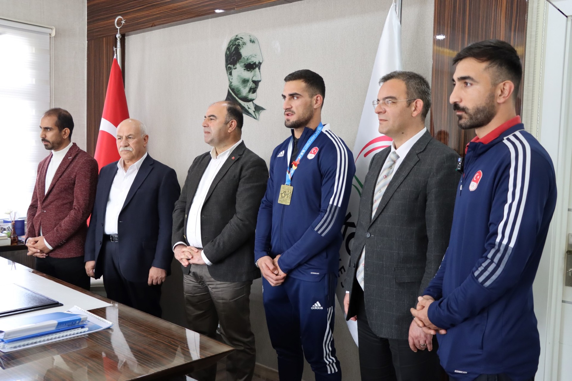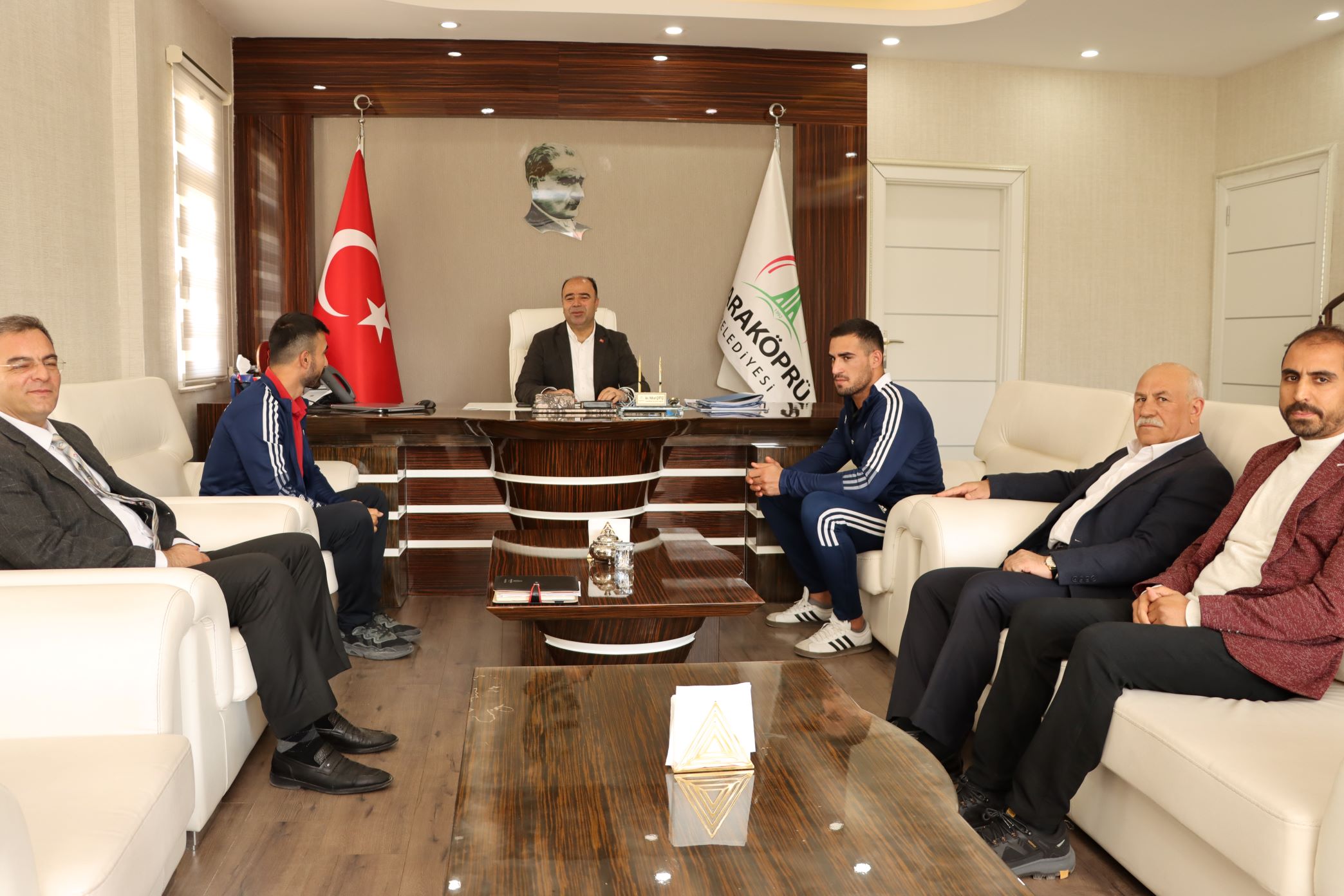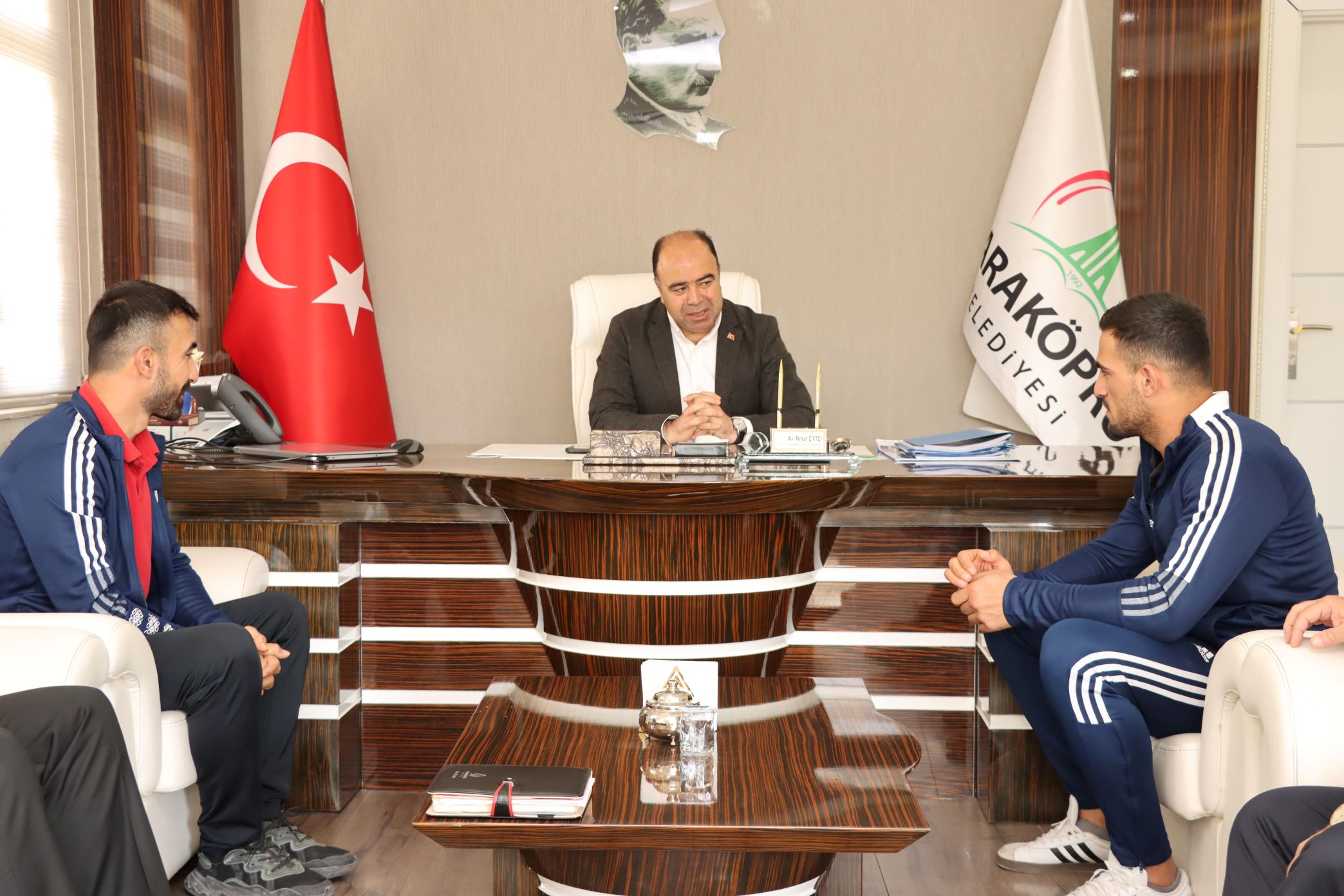 Şanlıurfa’da yetenekli oyuncuların olduğunu ifade eden Karaköprü Belediye Başkanı Nihat Çiftçi, “Şanlıurfamızı temsilen, Karaköprümüzü temsilen birincilik aldı. Bizler için gurur verici Karaköprünün evladı. Önümüzdeki turnuvalarda sorumlu yöneticiler olarak üzerimize düşeni yapacağız”Büyük bir gurur yaşadığını ifade eden 22 Yaş Altı Avrupa Boks şampiyonu Emrah Yaşar, Avrupa şampiyonasında Türk Bayrağını dalgalandırmak, istiklal marşı okutmak büyük gururdu dedi.Mutluluk verici bir duygu olduğunu ifade eden sporcunun antrenörü Serhat Akagündüz ise büyük bir gurur yaşadıklarını ifade etti.Ziyaretin sonunda Başkan Çiftçi, Emrah Yaşar’a çalışmalarında başarılar diledi.