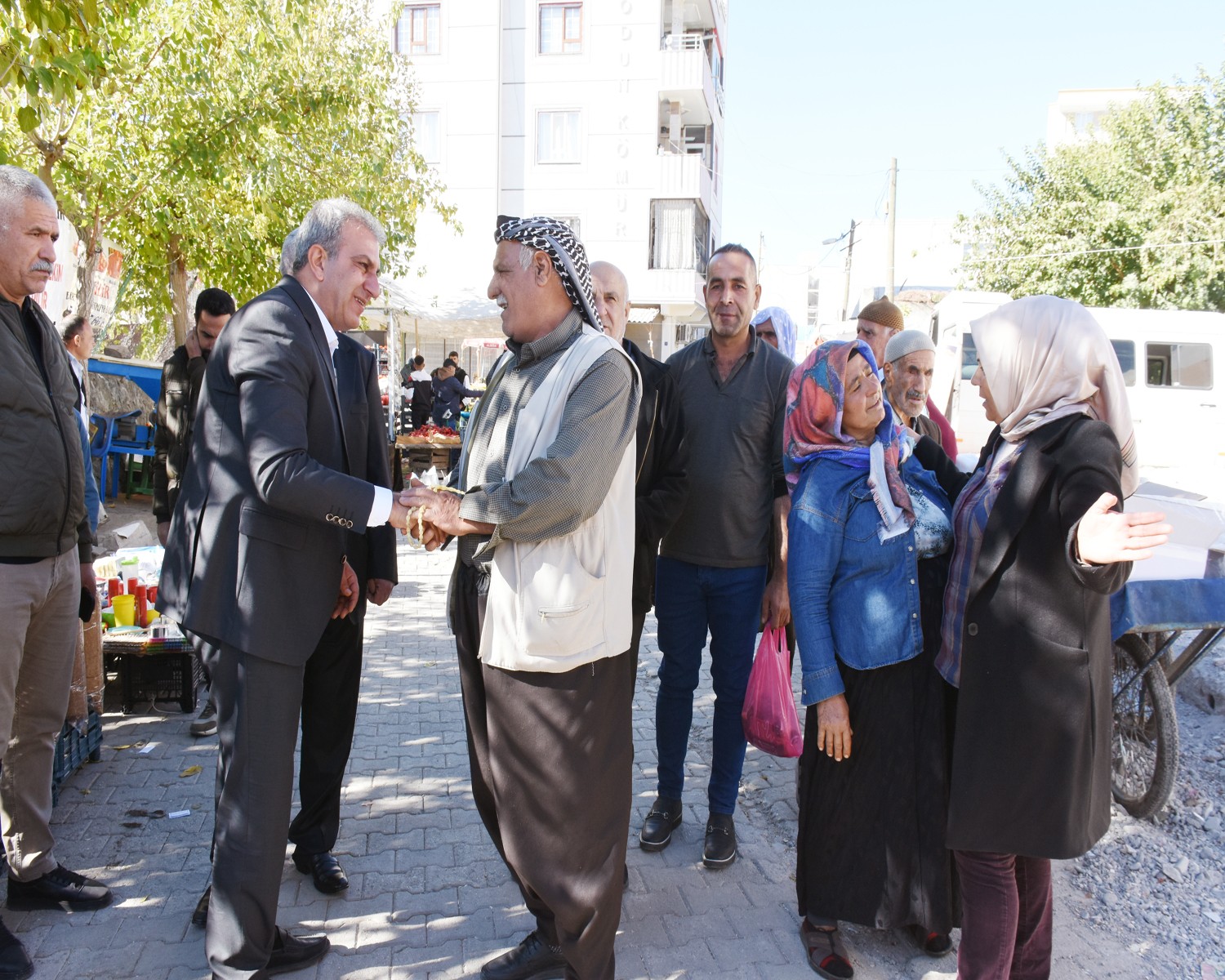 Hilvan Belediyesi Eş Başkanları Serhan Paydaş ve Garip Yeşil her hafta Cuma günleri kurulan Semt Pazarı esnafını ve alışverişe gelen vatandaşları ziyaret edip taleplerini dinledi.