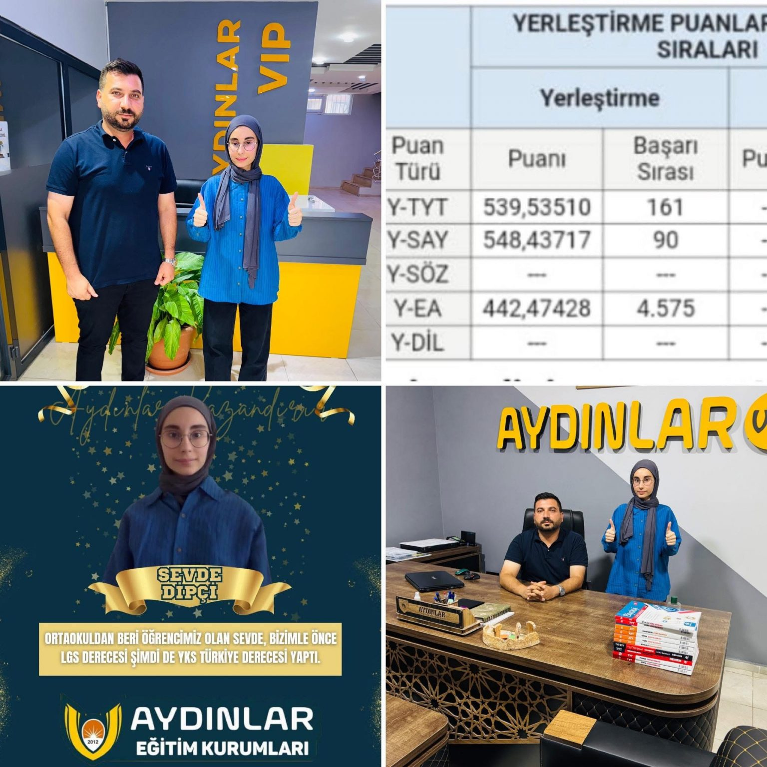 YKS’de Türkiye 37’ncisi ve 90’ncısı olmak üzere ilk 100’de iki öğrenci çıkardıklarını (ek puan olmadan) belirten Aydın, “Emek vermediğimiz işin reklamını yapmadık” diyerek, piyasada yüksek ücretlerle hizmet veren bazı kurumlara eleştiride bulundu. Bu başarının, gösterilen emeğin ve sistemli çalışmanın sonucu olduğunu vurguladı.