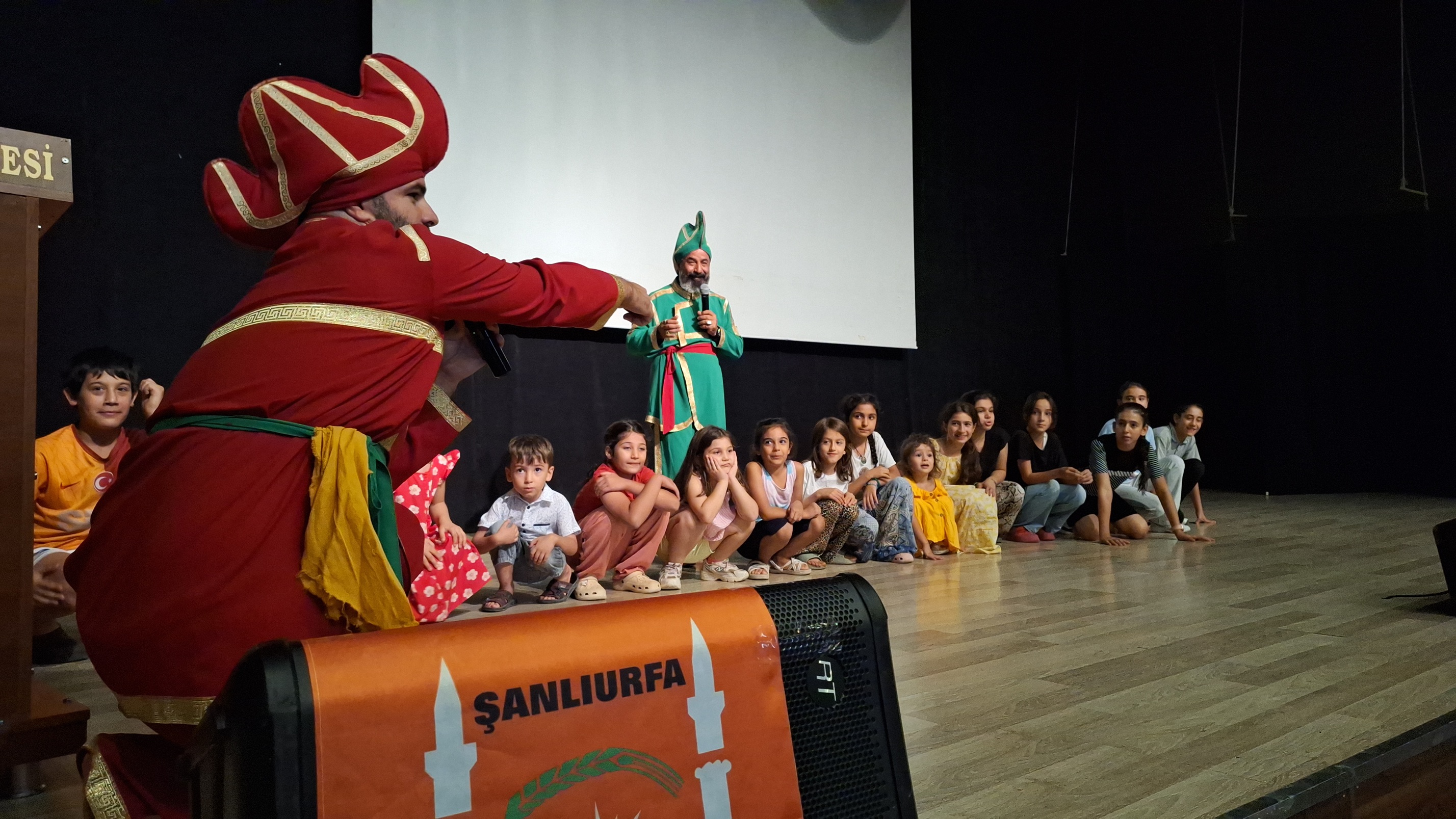 Şanlıurfa Büyükşehir Belediyesi tarafından düzenlenen tiyatro turnesi, ilçelerde çocuklarla buluşmaya başladı. Çocukları tiyatro ile buluşturmayı hedefleyen proje kapsamında, Şehir Tiyatrosu oyuncuları Hacivat karagöz oyunuyla minik izleyicilerle buluştu.