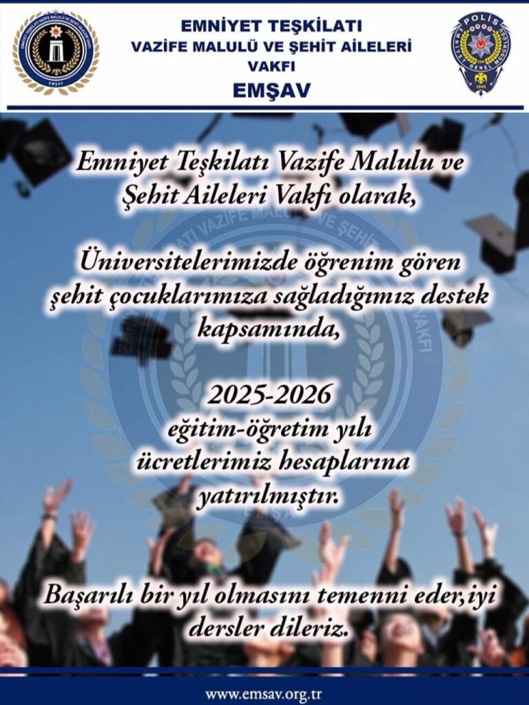 Emşav Şanlıurfa İl Başkanlığı olarak, Türkiye genelinde üniversitelerde eğitim gören Emniyet Teşkilatı, Şehit ve Gazi evlatlarımızdan, vakfımıza aktif öğrenci belgesini gönderen 100 gencimize kişi başı 15.000 TL olmak üzere toplam 1.500.000 TL (bir buçuk milyon lira) tutarındaki eğitim yardımlarını hesaplarına yatırdık.