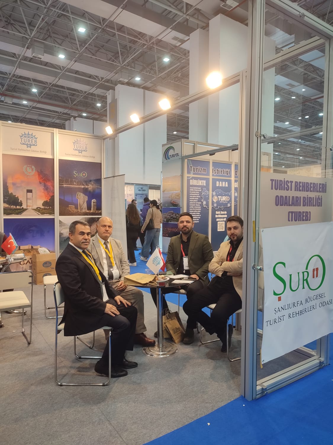 Tureb Turist Rehberleri Birliği başkanı Abdülkadir TANRIDAĞLI, TUREB Denetim Kurulu başkanı Müslüm ÇOBAN, ŞURO Şanlıurfa Bölgesel Turist Rehberleri Başkanı Müslüm AKKAY, İZRO İzmir Turist Rehberleri Odası başkanı Ayça KESİCİ Fuarda görevli olarak bulundular. ŞURO Şanlıurfa Bölgesel Turist Rehberleri Odası varlığıyla 19. 19.İzmir Turizm fuarında Şanlıurfa’yla birlikte güneydoğu ve Doğu Anadolu Bölgesi’nde temsil etmiş olduk.